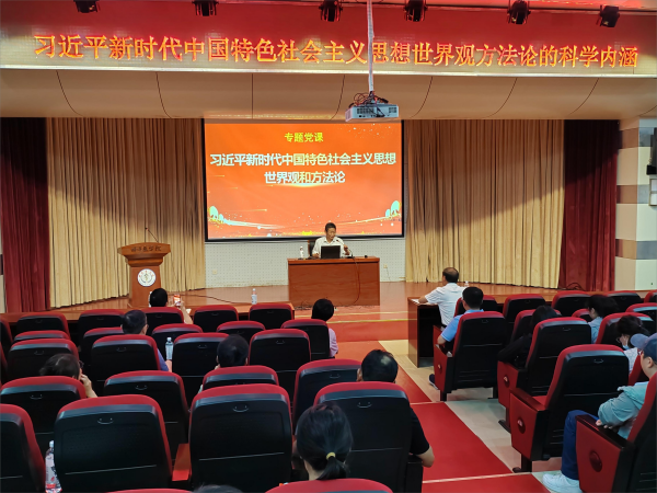 根据学校党委关于学习贯彻习近平新时代中国特色社会主义思想主题教育讲授专题党课工作安排,6月14日下午,校党委常委、副书记姚文兵在学校学术报告厅为万象城awcsport官网全体教师党员和研究生党员讲授《习近平新时代中国特色社会主义思想的世界观和方法论》专题党课。