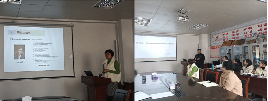 严海芹博士从科研工作开展角度分享了上交医免疫所浓厚的科研氛围和灵活的学术交流方式。严博士还从学生培养角度重点介绍了上交医研究生教育的课程设置和研究生培养过程的良好做法,为万象城研究生培养提供了宝贵经验。李成喜从校园文化、学术氛围、交流培训等方面对上交医进行了详细介绍,重点分享了他在课题组参与的科研项目进展情况。两位博士都对上交医的老师在研修过程中给予的无私而热心的指导和帮助表达了感谢。参会老师与两位博士围绕教师去上交医进修的具体政策及研修中面临的困难等方面进行了交流。